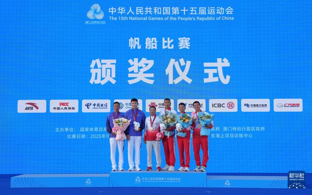 10月30日,广东队冠军毕坤(右三)、福建队亚军黄震(左二)、广东队季军蒋成范(右一)在男子水翼帆板组颁奖仪式上与教练合影。当日,第十五届全国帆船比赛在广东省汕尾市落下帷幕。新华社供图 晋美多吉10月30日,广东省队运动员江成范(左)与香港队运动员郑庆澜在男子水翼帆板奖牌争夺战中展开角逐。最终,姜千帆获得第三名,郑清然获得第四名。当日,第十五届全国帆船比赛在广东省汕尾市落下帷幕。新华社照片 晋美多吉 10月30日,广东省队队员江成帆(左)与香港队队员郑庆澜(中)参加男子水翼艇比赛冲浪奖牌比赛。最终,姜千帆获得第三名,郑清然获得第四名。当日,第十五届全国帆船比赛在广东省汕尾市落下帷幕。新华社供图 晋美多杰10月30日,广东省队队员江成帆(左)和香港队队员郑庆澜(中)参加男子水翼帆板奖牌争夺赛。最终,姜千帆获得第三名,郑清然获得第四名。当日,第十五届全国帆船比赛在广东省汕尾市落下帷幕。新华社供图 晋美多杰