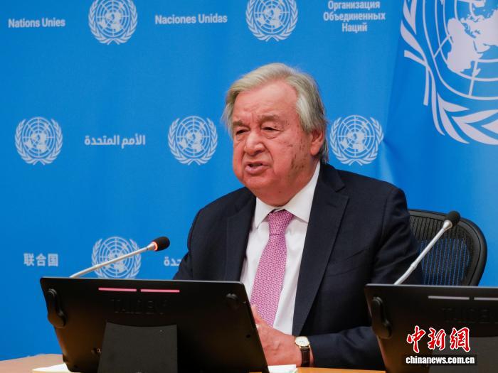 9月9日,联合国秘书长古特雷斯(Guterres)在纽约联合国总部举行的新闻发布会上谴责以色列对卡塔尔的袭击。摄影摄影,中国新闻服务,王方,