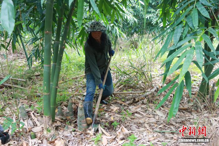 中国新闻服务,刘易州,7月18日(杨Zhixiong,wei xinna,Yang Zhixiong)夏季,Xicun,Baipeng Town,Liujiang区,Liuzhou和Guangxi市的Liujiang区,欢迎溢出收获季节。环顾四周,山坡上的绿色竹林,新鲜的竹芽和管道从地面挖出,空气充满了新鲜的竹香气。